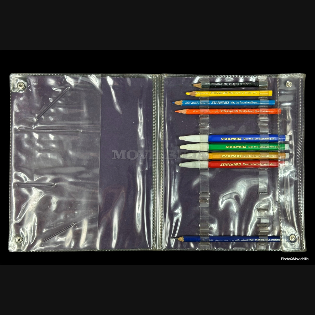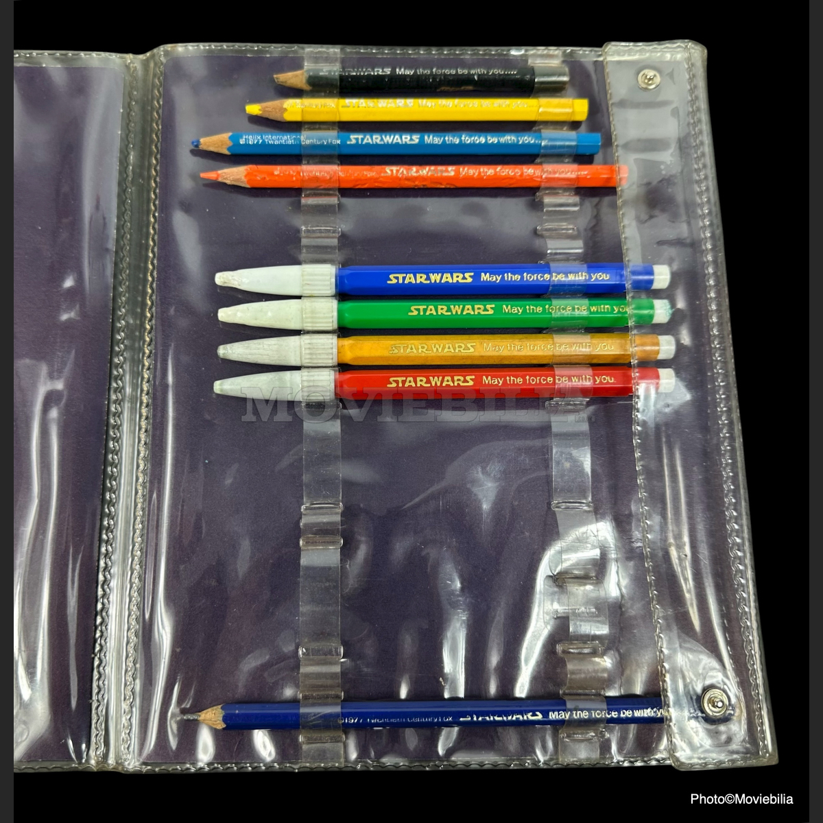 A rare vintage 1977 Helix school set still containing original vintage 1977 Star Wars branded used pencils x 5 and used felt tip pens x 4.